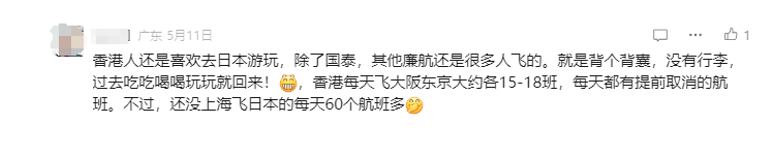 不仅如此,大湾区航空也自5月中旬起,将德岛—香港从每周3班减至2班 ,预计持续至10月,理由同样是需求骤降。