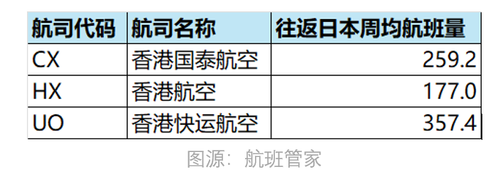 国泰航空:凭借强大的中转网络和高端商务资源,稳居中高端市场,每周飞日本259.2班;